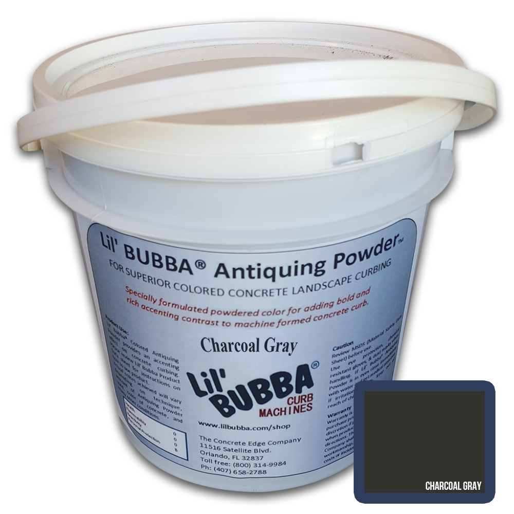 Antiquing Powder - Charcoal Gray - 8lb plastic pail with reuseable lid. Premium antiquing colors used for application of secondary colors with stamp and roller patterns.