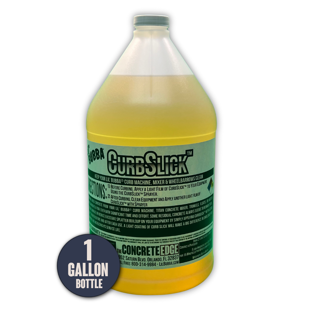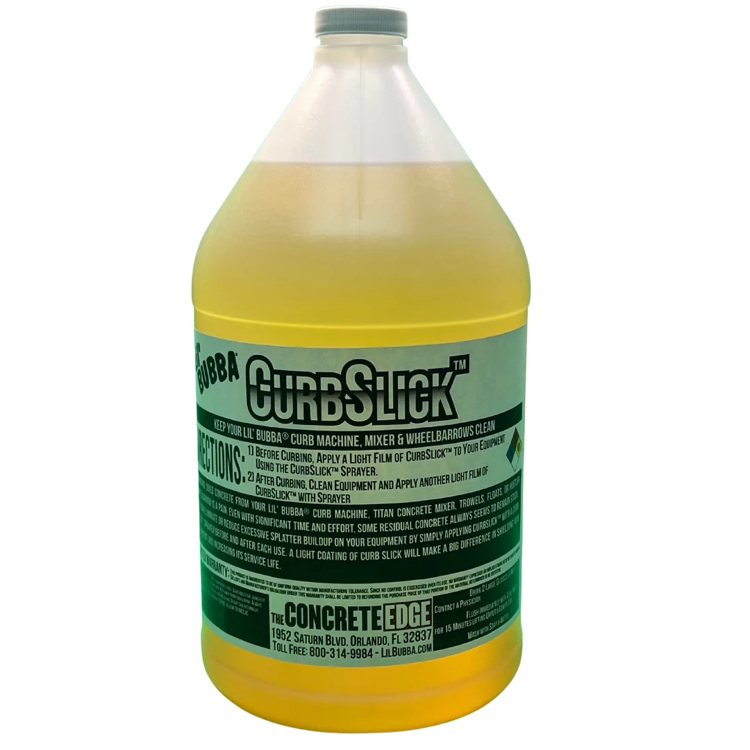 Keep your Lil’ Bubba® Curb Machine, mixers, and wheelbarrows clean and operating efficiently with CurbSlick™. Specially formulated to prevent concrete buildup, this powerful solution creates a protective barrier that minimizes cleanup time and extends your equipment’s lifespan.
