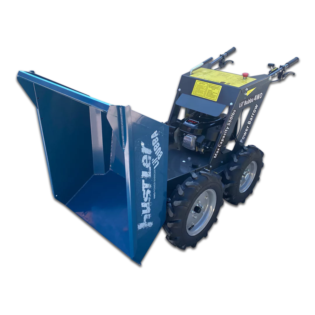 The Lil’ Bubba® Hustler 4WD Power Barrow doesn’t require a coffee break, a lunch, or anything else but gas. This mini dump truck is perfect for curbing professionals who don’t have time and energy to waste as the Hustler 4WD is a motorized wheelbarrow on steroids – the ultimate workhorse, making heavy lifting easy. No more back pain, no blisters and it’s the fastest and easiest way to carry concrete (or anything).
